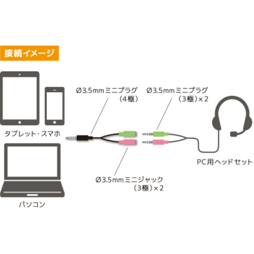 ●PC用ヘッドセットがタブレットやスマホで使える!オーディオ変換ケーブル