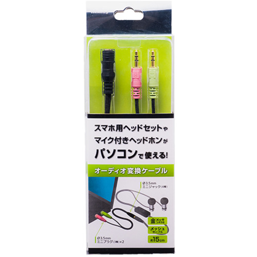 ●スマホ用ヘッドセットやマイク付きヘッドホンがパソコンで使える!オーディオ変換ケーブル