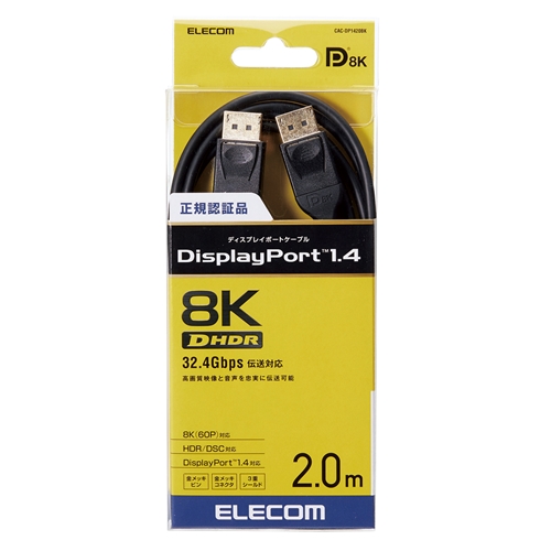 エレコム CAC-DP1420BK ディスプレイポートケーブル DisplayPort規格Ver1.4 2m