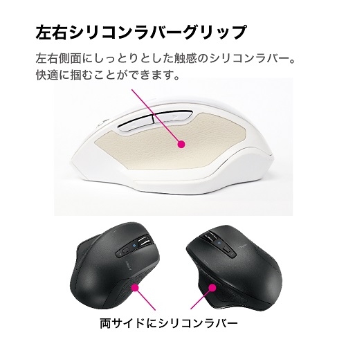 握り心地を追求したエルゴノミクス設計で、手のひらに沿う使いやすい形状のマウスです。サイドラバー採用のフル静音仕様です。