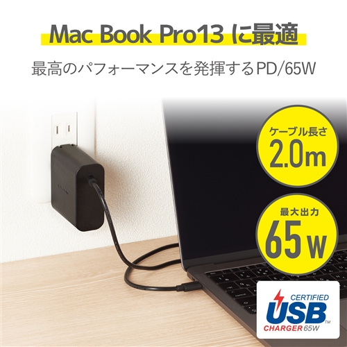 【推奨品】エレコム ACDC-PD0465BK Power Delivery対応USB AC充電器(65W)