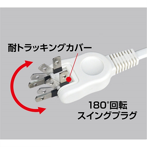 プラグが180°回転するので壁面に沿わせてスッキリ配線できます。