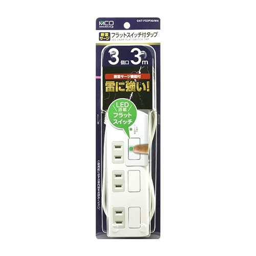 ミヨシ OAT-FS3P30/WH フラットスイッチ付きタップ 3個口 3M 白