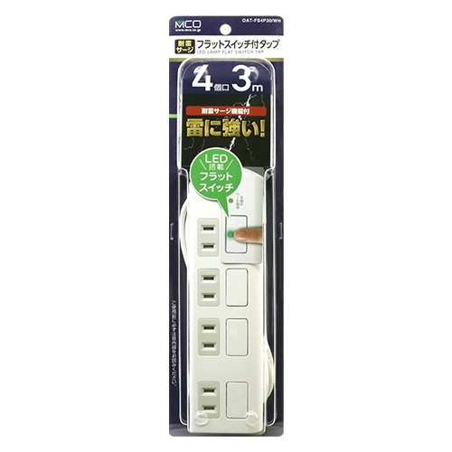 ミヨシ OAT-FS4P30/WH フラットスイッチ付きタップ 4個口 3M 白