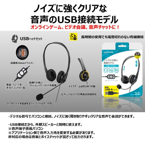 ノイズに強くクリアな音声のUSB接続モデル。オンラインゲーム、ビデオ会議、音声チャットに!
