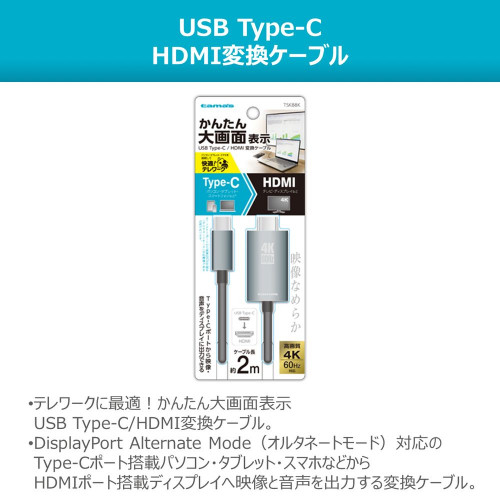多摩電子工業 TYPE-C/HDMI変換ケーブル 2.0m TSK88K