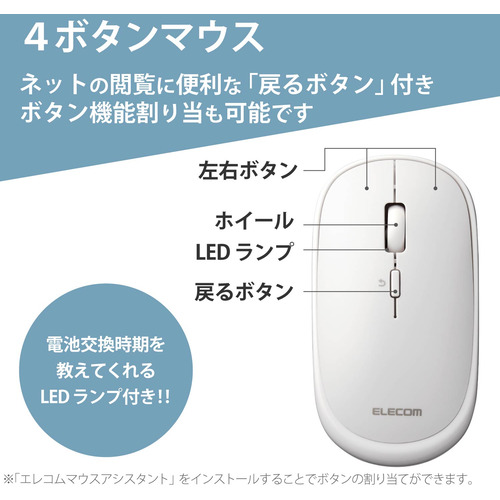 エレコム M-TM10BBWH Bluetooth4.2マウスM-TM10シリーズ ホワイト