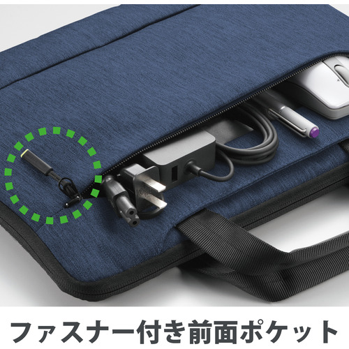 ●ACアダプター・マウス・ペンなどの小物を整理して収納できるフロントポケットがついています。