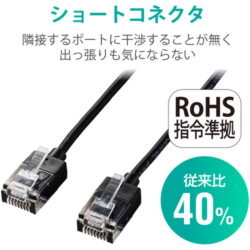 超スリムケーブルとショートコネクタを採用し、高速で安定したネットワーク環境を実現するカテゴリー6A準拠LANケーブル。