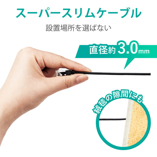 ●狭い場所などでの配線に最適な、直径わずか3.0mmの超スリムケーブルを採用しています。
