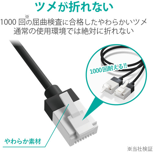 ●屈曲に対する耐久性が高い新素材コネクタを採用し、通常の使用環境では絶対にツメが折れないLANケーブルです。
