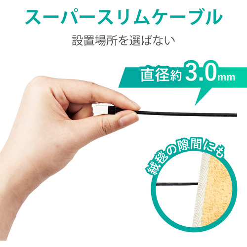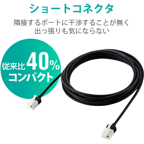 直径わずか3.0mmのスーパースリムケーブルと従来比約40%のショートコネクタを採用したカテゴリー6A準拠のLANケーブル。