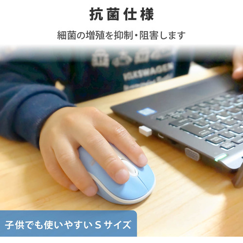 エレコム M-DY10DRSKBUL 無線マウス 光学式 Sサイズ 抗菌 ライトブルー