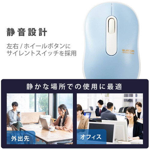 ●マウスのクリック時のカチカチ音がしない静音スイッチを採用し、音が気になる場所でも使えます。