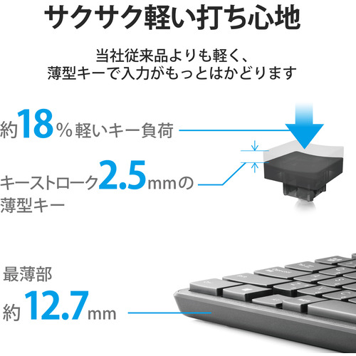 ●サクサクと軽い打ち心地を実現したキー設計を採用した薄型キーボードです。