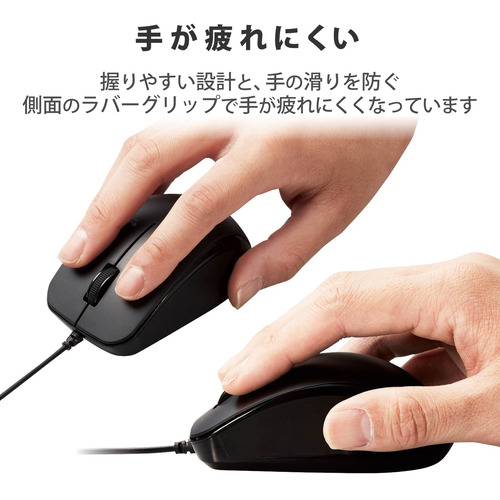 ●手に心地良くなじむ「手にぴた」設計のため、疲れにくく、握りやすい有線マウス。