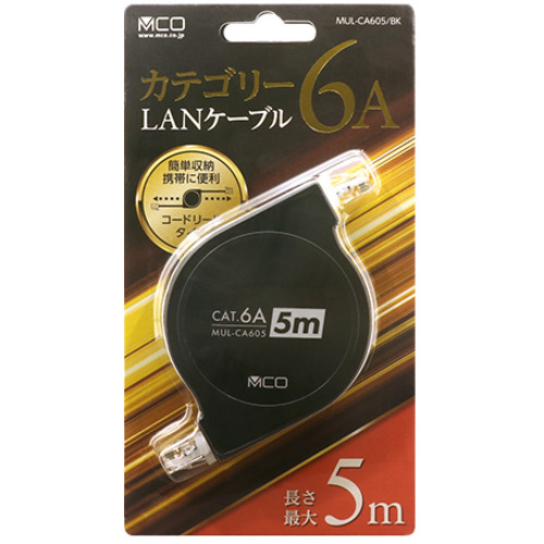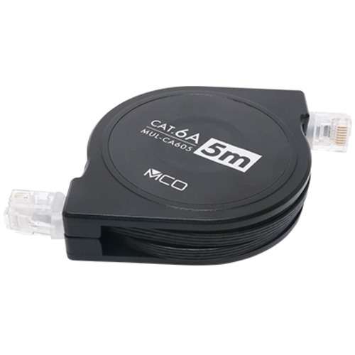 ミヨシ MUL-CA605/BK カテゴリー6A コードリールLANケーブル 5m ブラック