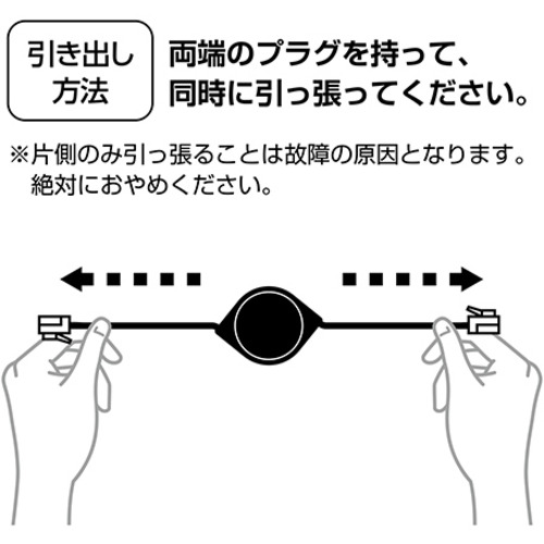 ※戻りが悪い場合は、一度ケーブルをすべて引き出してから軽く引っ張ってください。