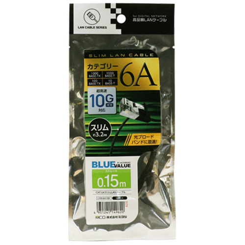 ミヨシ LYM-6A1BK CAT.6A スリムLANケーブル 0.15m ブラック