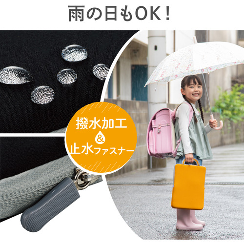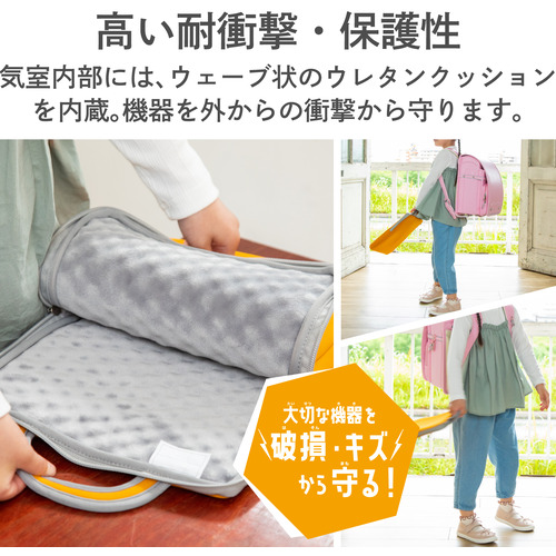 効果的に衝撃を吸収する低反発ポリウレタンを内蔵しながらも、ランドセルに収納可能なコンパクトさを実現した、ハンドル付き耐衝撃インナーバッグ。