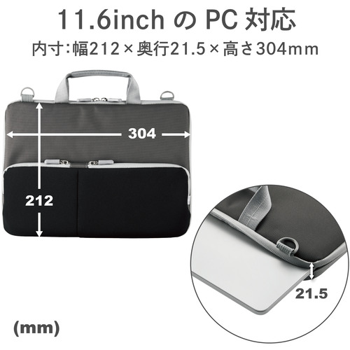 エレコム BM-IBHPTS11BK インナーバッグ ハンドル付 ショルダーベルト付 ポケット付 耐衝撃 11.6inch ブラック