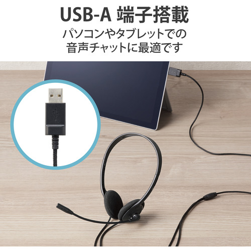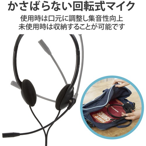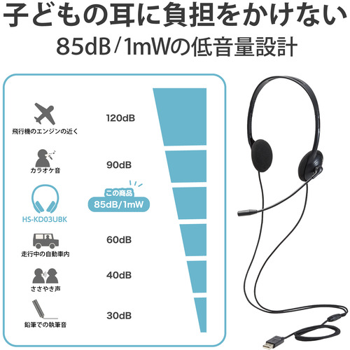 エレコム HS-KD03UBK 子ども専用ヘッドセット 回転式マイクアーム付き 軽量 両耳 USB ブラック