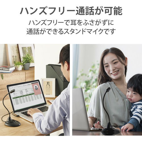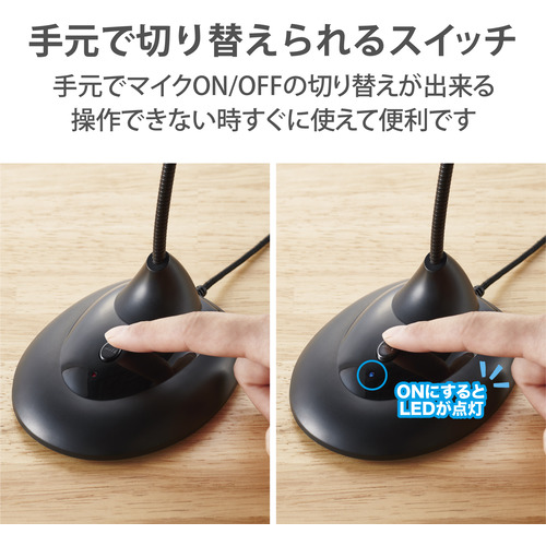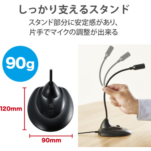 手元に置いてそのまま使えるマイクON/OFF機能付きスタンド式USBマイク。