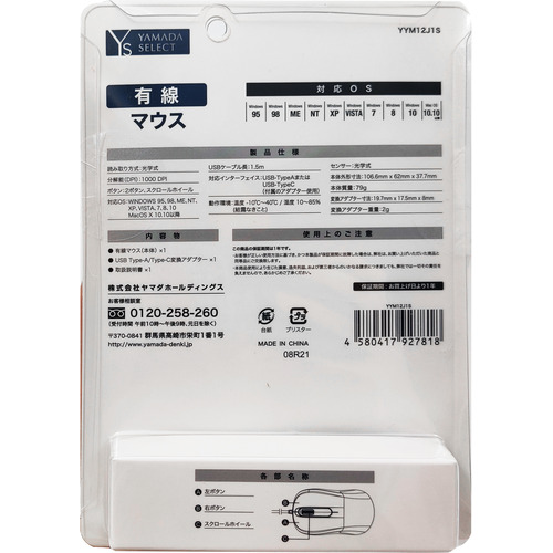 YAMADA SELECT YYM12J1 有線マウス スカイブルー