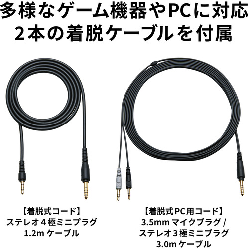 ●着脱可能な2本のケーブルで多様なゲーム機器やPCに対応