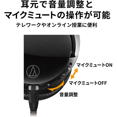 左側のハウジングに、音量調整とマイクミュートが操作できるスイッチを配置