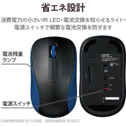 エレコム M-BY11BRKBU マウス Bluetooth IRLED 3ボタン Mサイズ 抗菌 ブルー
