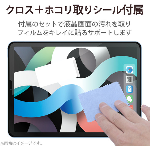 液晶画面を傷や汚れから守る、防指紋・高光沢タイプのiPad Pro 11inch 第3世代 2021年モデル、iPad Air10.9インチ(第4世代)、iPad Pro 11インチ 2020年春モデル、iPad Pro 11インチ 2018年モデル用液晶保護フィルムです。