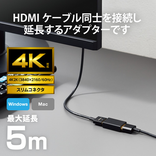 ●短いHDMIケーブル同士を接続し、最大5mまで延長することが可能です。