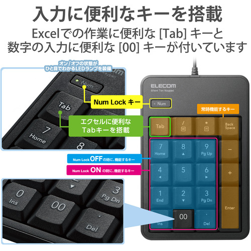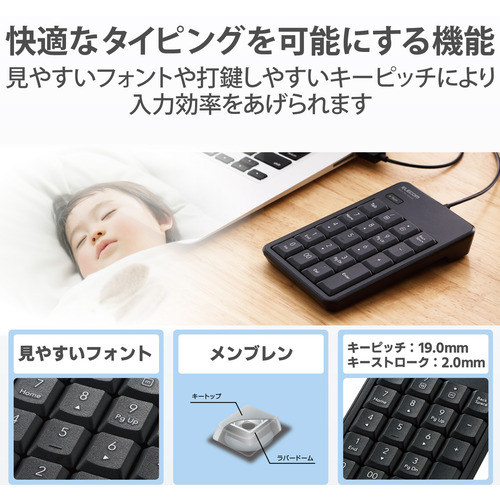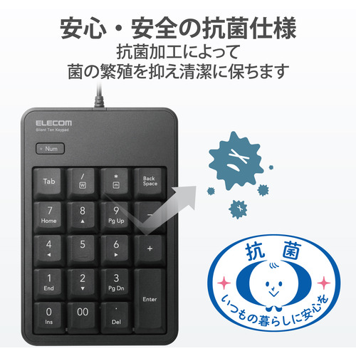 エレコム TK-TCM021SKBK テンキー 有線 USB接続 抗菌 静音 メンブレン ブラック