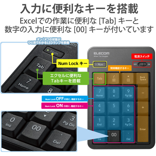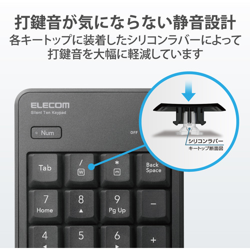 ●音が気になる場所や時間帯での使用に最適なワイヤレス静音テンキーパッドです。