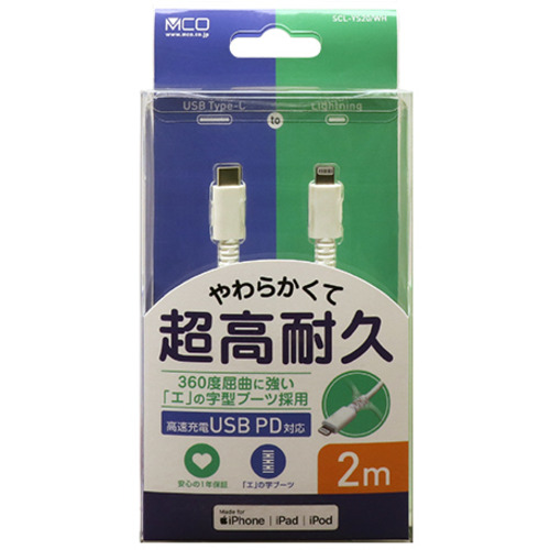 ミヨシ SCL-YS20/WH 超高耐久Lightning - Type-Cケーブル ホワイト