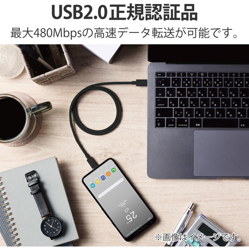 ●USB Type-C(TM)を搭載しているパソコンなどに、USB Type-C(TM)を搭載している機器を接続し、充電やデータ転送ができるUSB2.0ケーブルです。