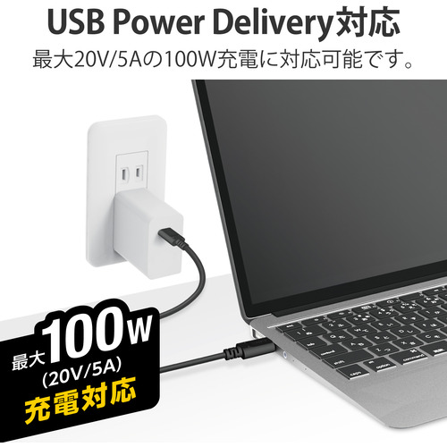 ●USB Power Delivery対応により、最大100W(20V/5A)の大電流で接続機器への給電が可能です。