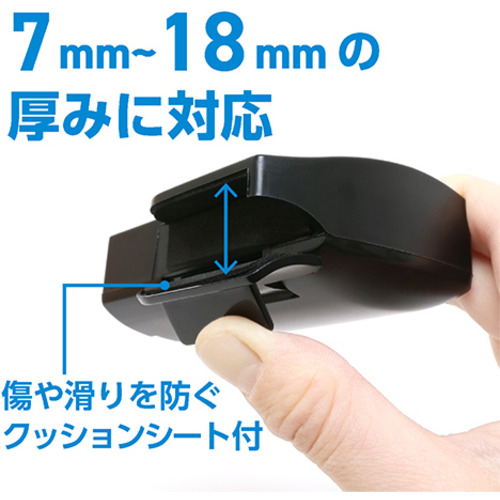 クリップは7mm〜18mmの厚みに対応しています。