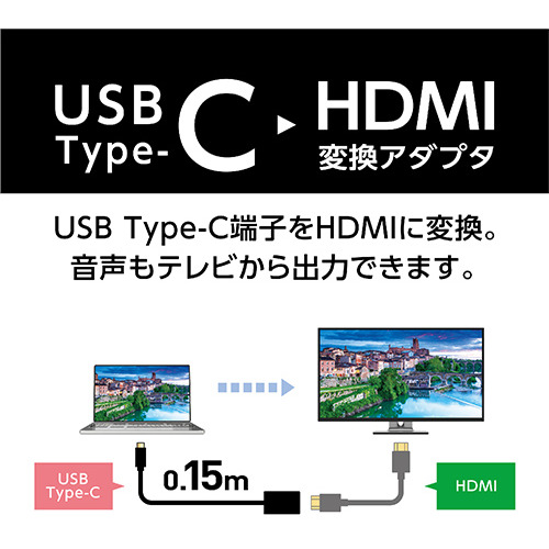 USB Type-Cを搭載した端末から、テレビやモニターなどの大画面へ出力が可能なアダプタです。