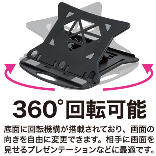 ノートPCやタブレットを置いて360°回転できるスタンドです。