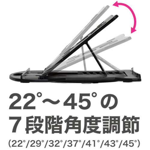 7段階の角度調節機能を搭載しており、22°/29°/32°/37°/41°/43°/45°の角度から、お好みの角度をお選びいただけます。