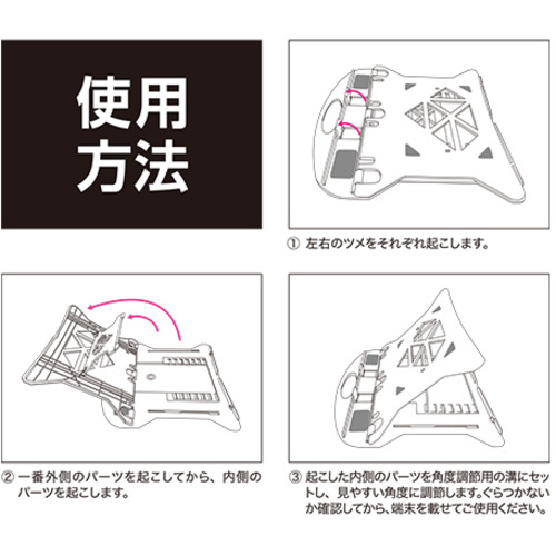 3.起こした内側のパーツを角度調節用突起の溝にセットし、見やすい角度に調節します。