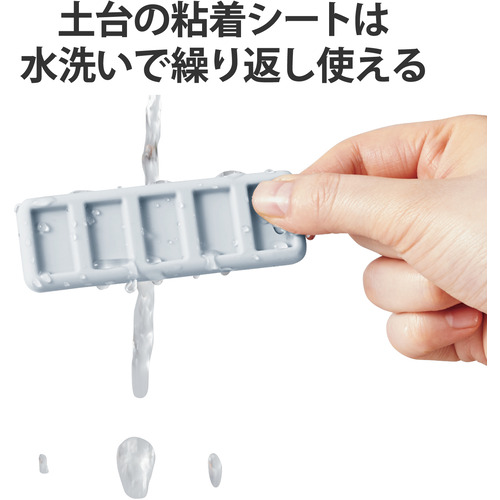 ●土台の粘着シートは、水洗いで繰り返し使うことができ、簡単にお手入れ可能です。