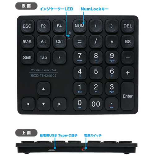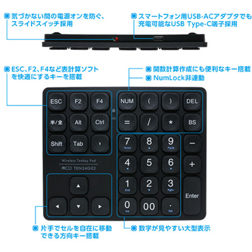 ●表計算ソフトに最適な方向キー付きワイヤレステンキーパッド