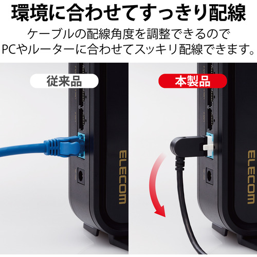 ●ケーブルの配線角度を調整できるので、パソコンやルーターなどの設置環境に合わせてスッキリと配線することができます。