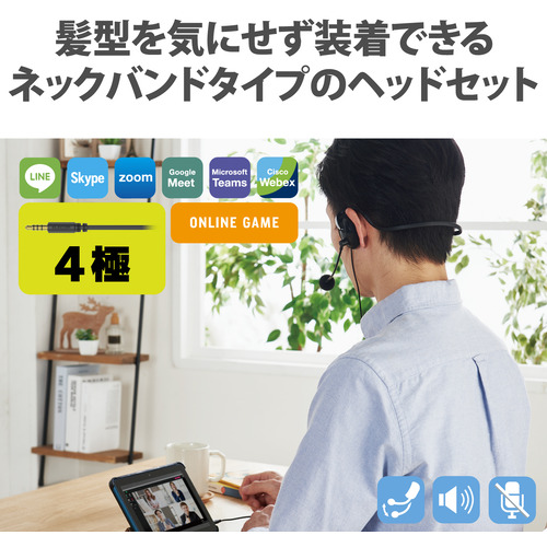 ●オンラインゲーム、オンライン会議、音声チャットに最適!髪型を気にせず気軽に装着できるネックバンドタイプのヘッドセット。