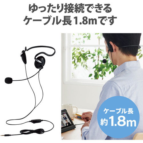 エレコム HS-NB03STBK ヘッドホン ヘッドセット 無指向性 マイク付き 有線 4極 3.5mm 接続 ステレオ 両耳 ネックバンドタイプ 軽量ブラック