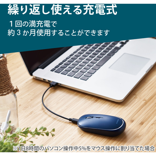 エレコム M-TM15BBBU マウス ワイヤレスマウス 無線 Bluetooth 静音 4ボタン 充電式 ブルー
