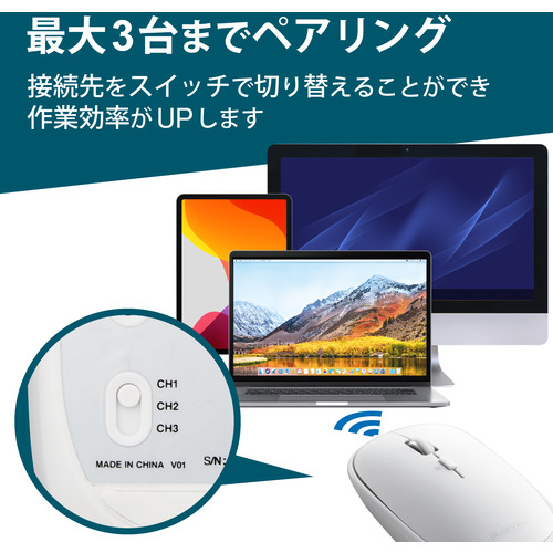 ●Bluetooth(R)HOGPに対応したパソコンであれば、レシーバーを接続することなくスマートにマウスを使用できるため、USBポートの少ないパソコンやタブレットに最適です。